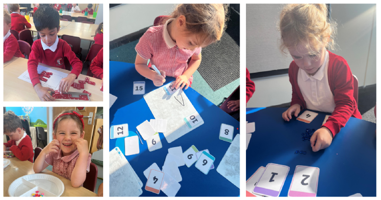 In Maths, the children have been busy exploring numbers up to 10. They've been practising counting, forming numerals correctly, and even starting to use the symbols for greater than, less than and equal to.