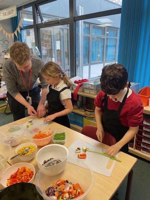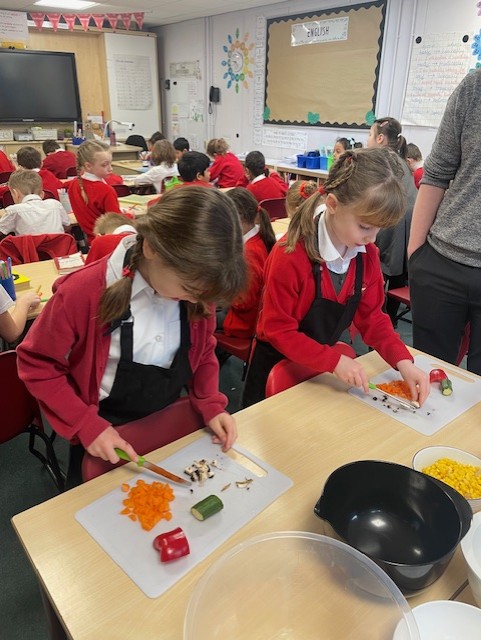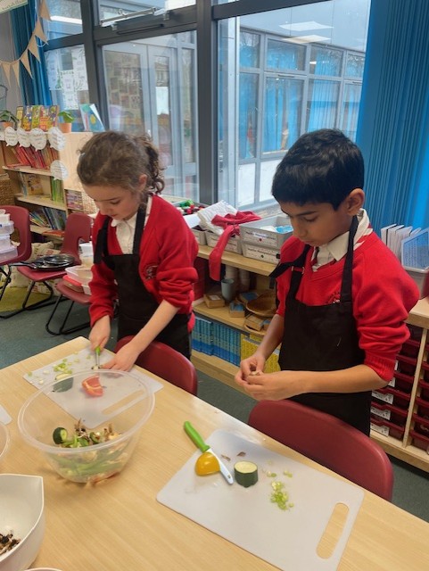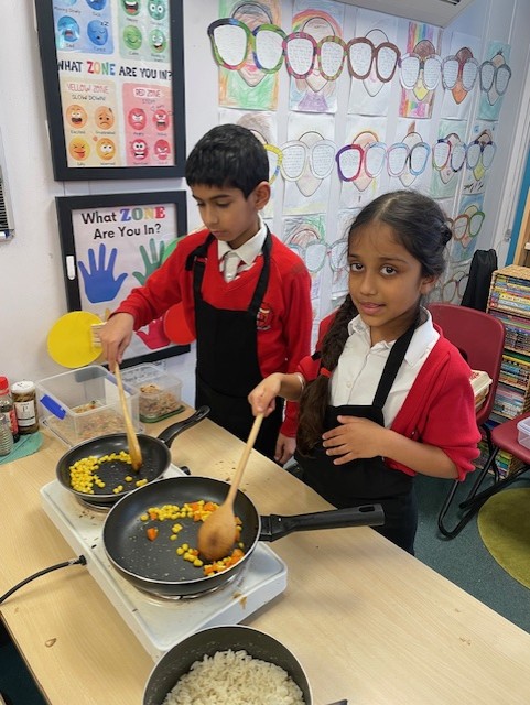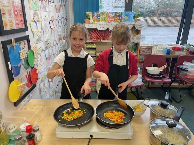 This week in Design and Technology, Elm Class became chefs as they designed and made their very own rice dishes. After tasting different types of rice and planning their recipes, the children carefully chopped ingredients, fried vegetables, added rice and kept everything moving with lots of stirring. A pinch of salt and pepper, and a splash of soy sauce, the results were delicious! The children worked safely, showed excellent kitchen hygiene and behaviour, and most importantly, had great fun creating and enjoying their food.